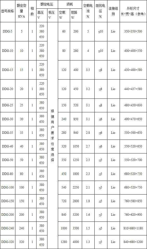 DDG型变压器系列采用空气自冷式,其余均露于空气中,并有可吊起整个器身的开孔或吊环。